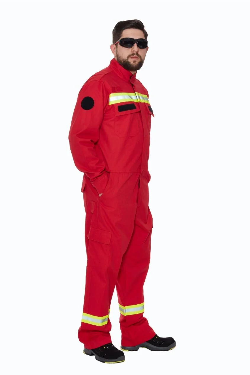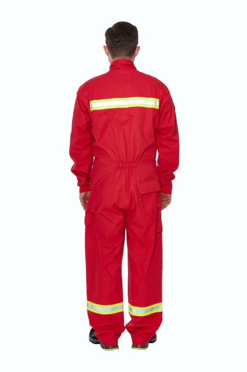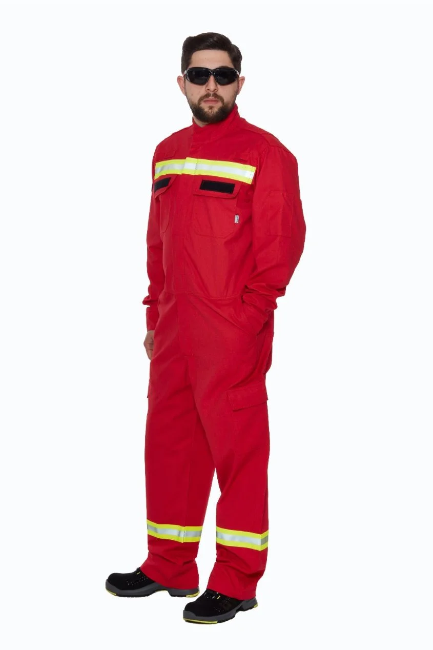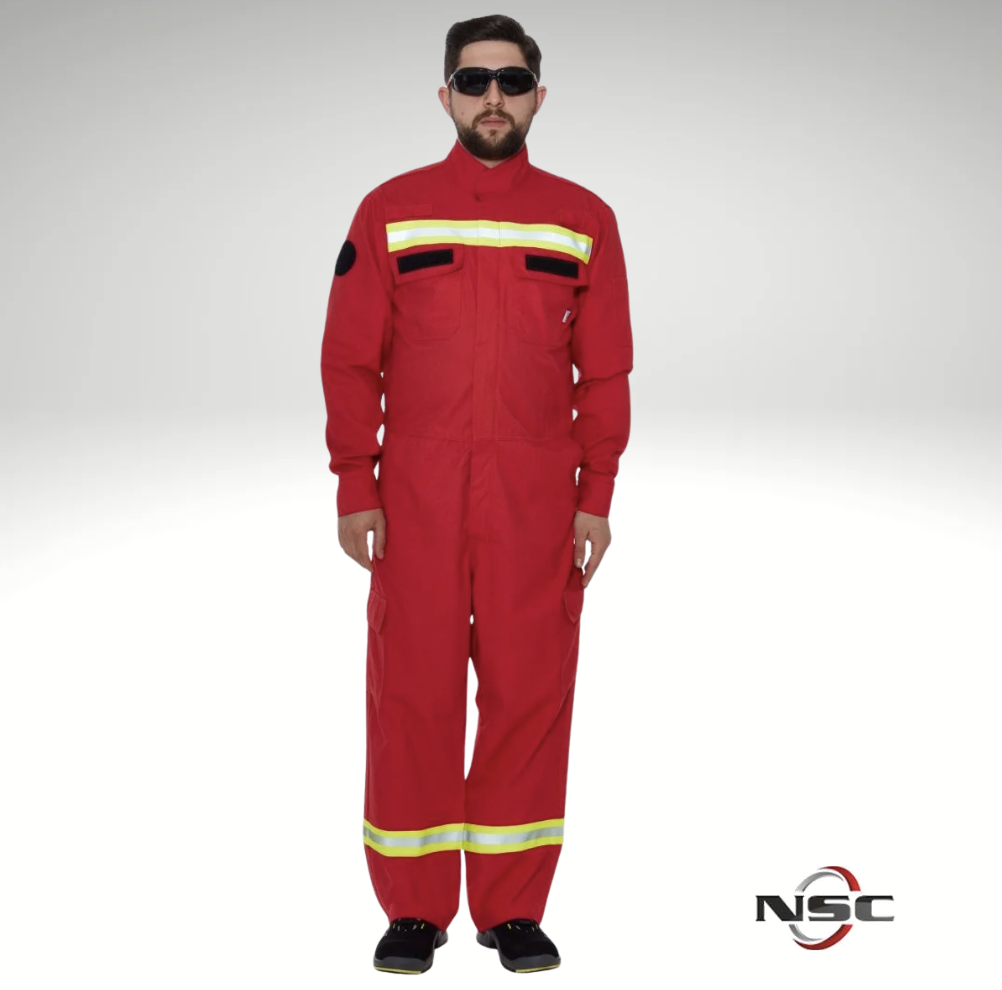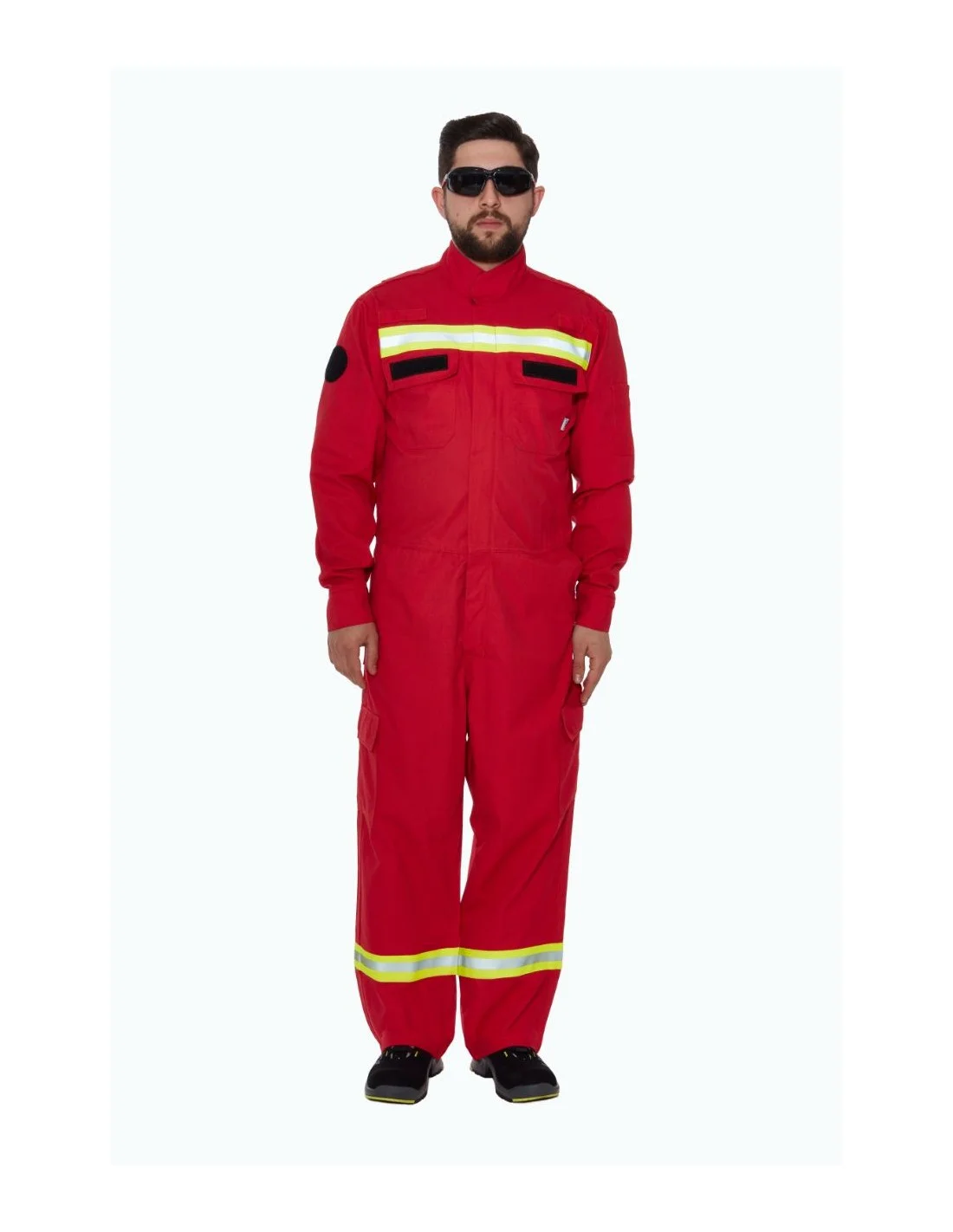 • Göğüs, sırt, kol ve pantolonda tek sıra yatay 3M® Scotchlite 5 cm alev almaz reflektif (sarı-gri-sarı veya kırmızı-gri-kırmızı), Alev girişini önleyen fermuarı koruyucu ön patile yüksek koruma sağlar,